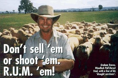 Stock losses in drought times are heartbreaking. But Graham Traves' Woodlock Pol Dorset Stud in the Central Tablelands, NSW, managed to get through the recent dry with its ewes and lambs in good order. "We had a good crop of winter wheat that had only 3L/ha of R.U.M. on it and we turned the flock onto that when everything started to dry up", Graham said. "Then we moved them onto some oats and finally onto the lucerne you see today." And that's dryland lucerne in its fourth year of R.U.M." A longtime R.U.M. user, Graham knows that feed quality is always more important than feed quantity.